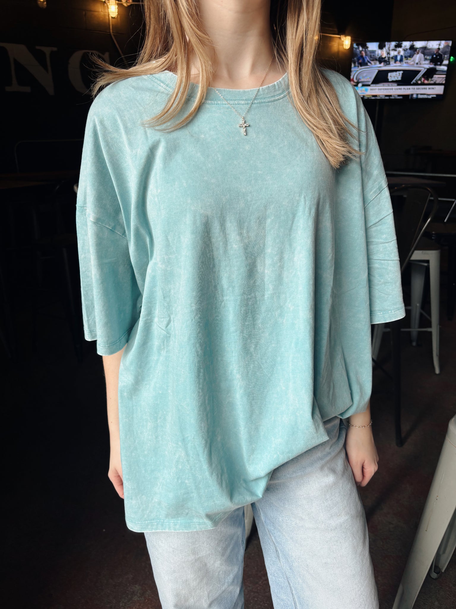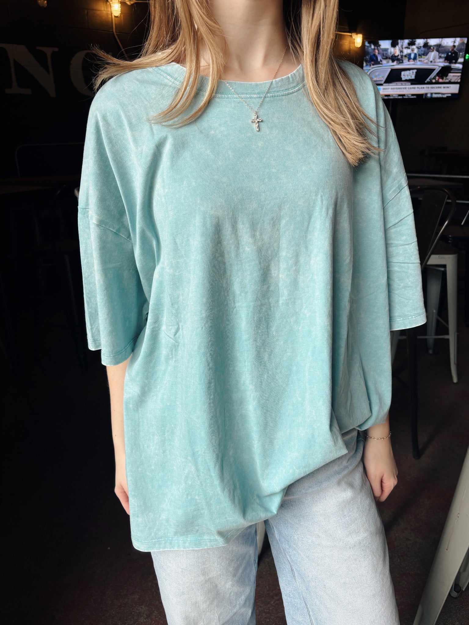 Acid Wash Cotton Drop Shoulder Boyfriend Box Tee * Each Item Is Unique, Expect Variations In Color due to Acid Wash Process