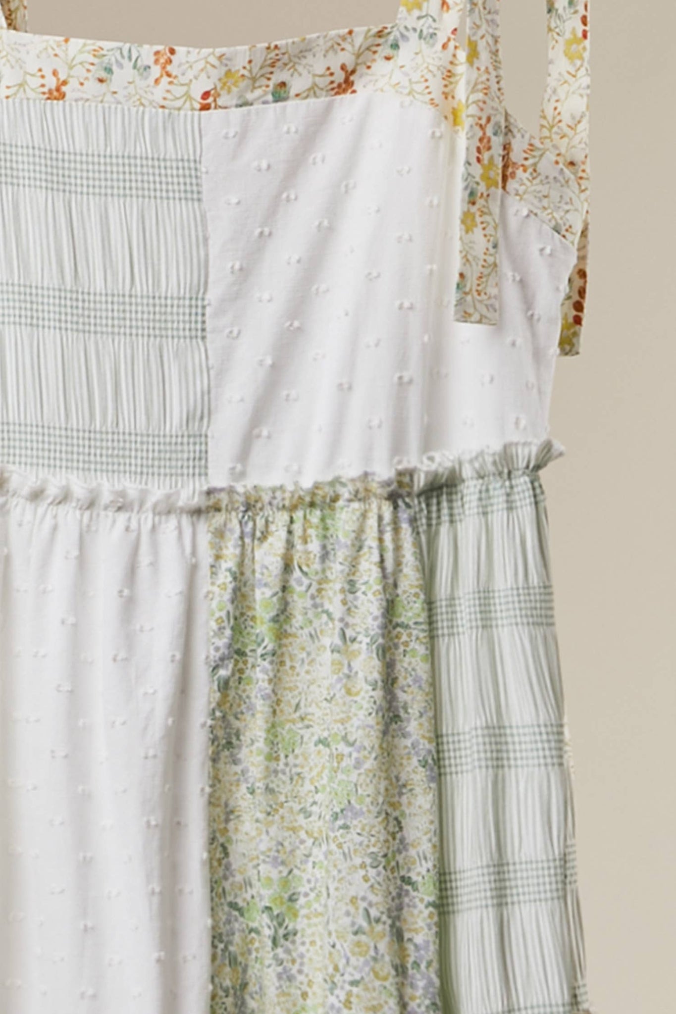 Patchwork Tie-Shoulder Tiered Maxi Dress