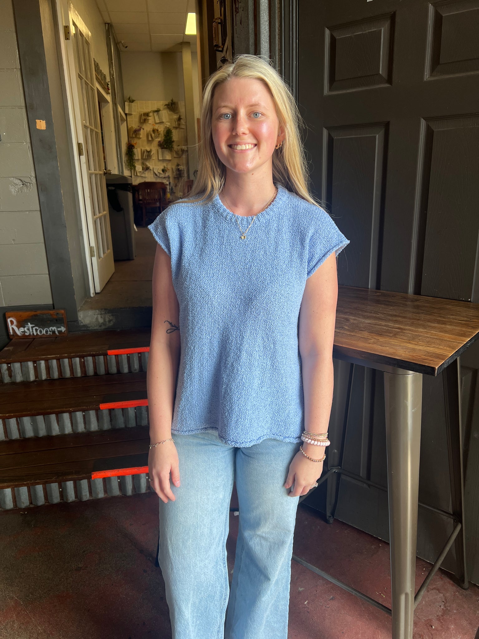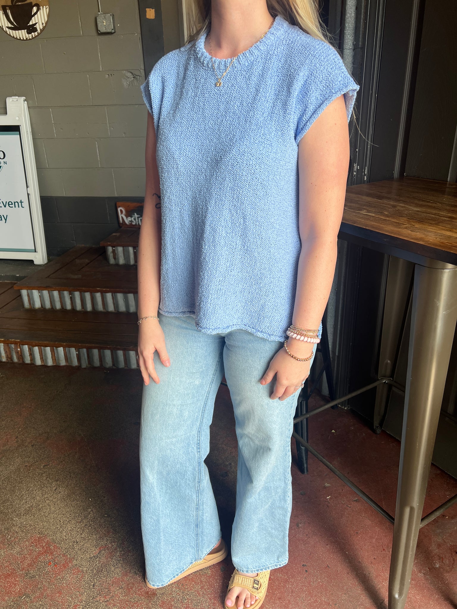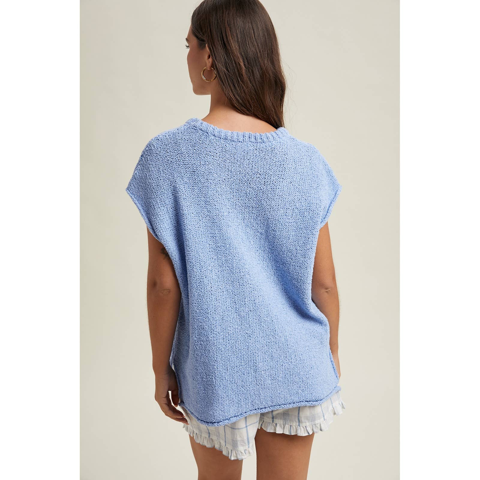 TEXTURED CAP SLEEVE SWEATER VEST