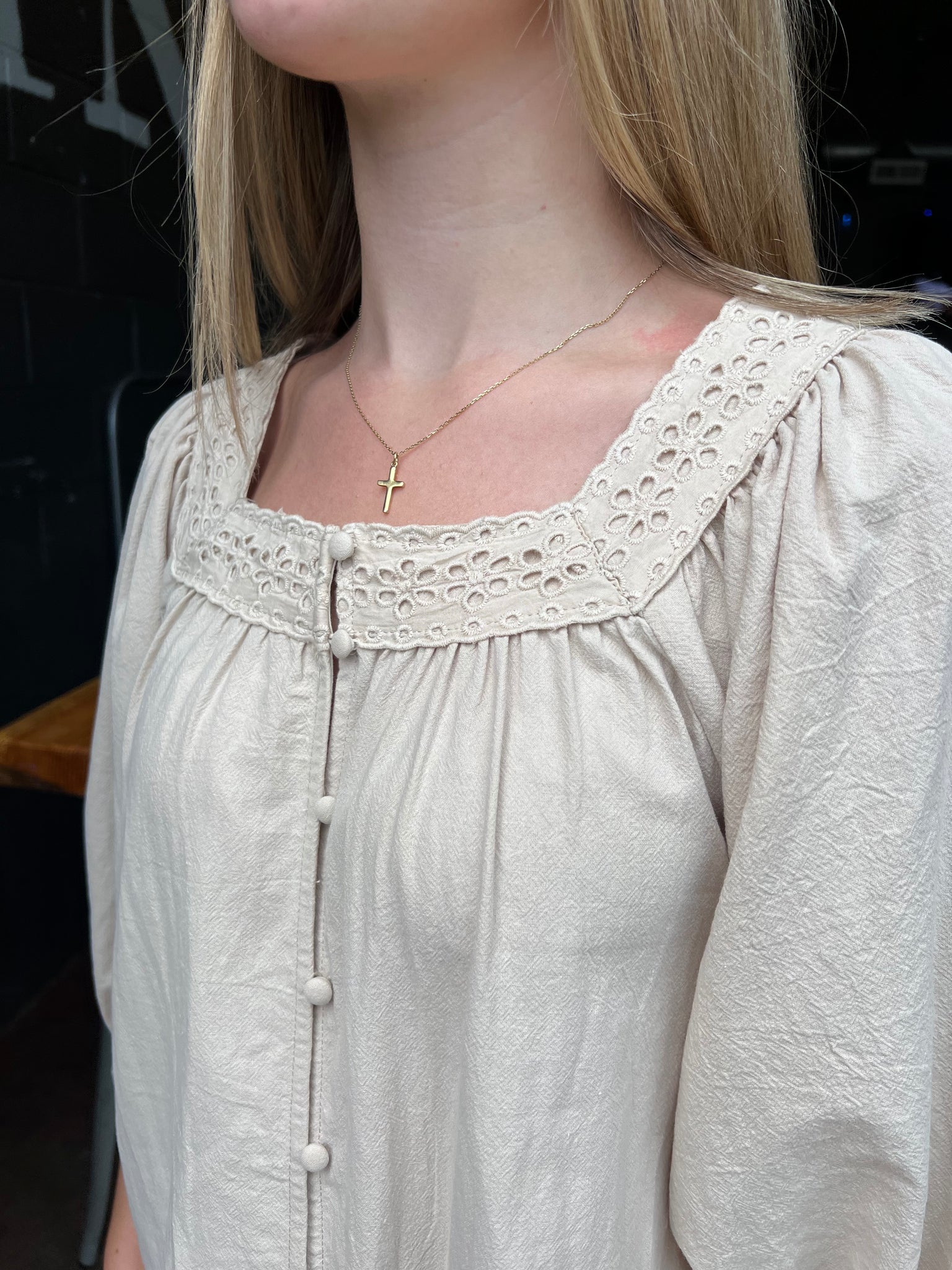 Beige Button Down Lace Trim Blouse (S-3XL)