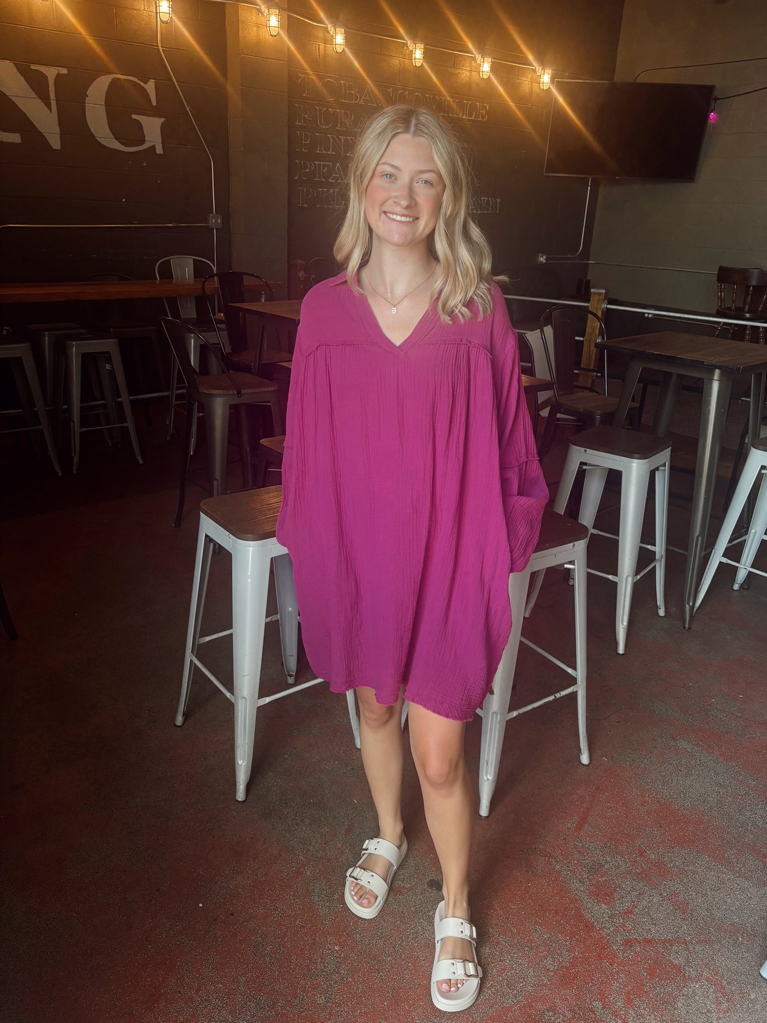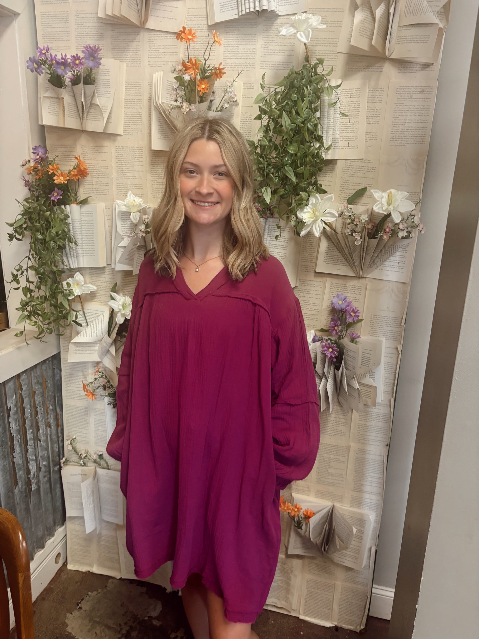 Eggplant Washed Gauze Shirt Dress (S-3XL)