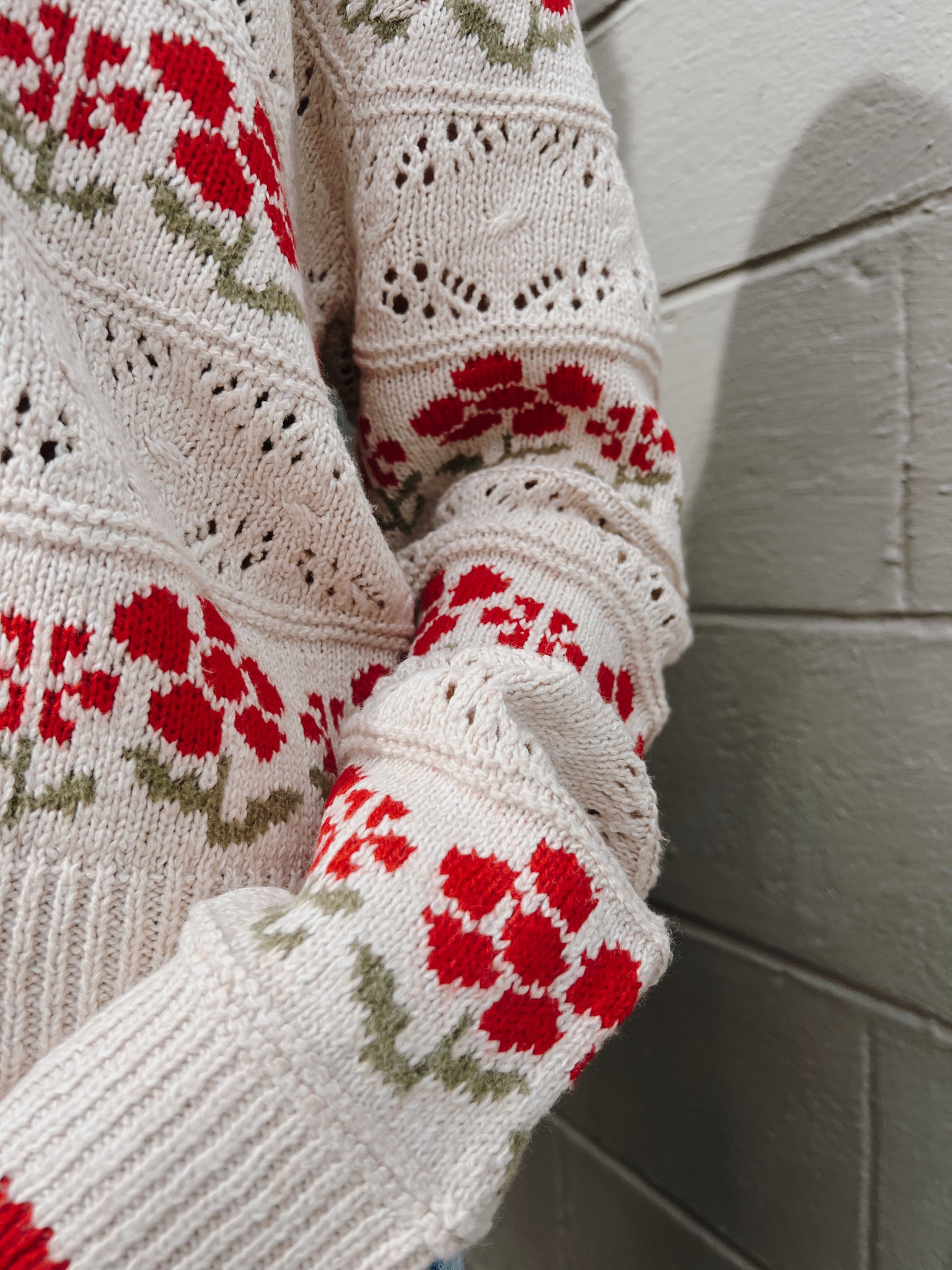 Floral Detail Knit Sweater Cardigan in Oatmeal